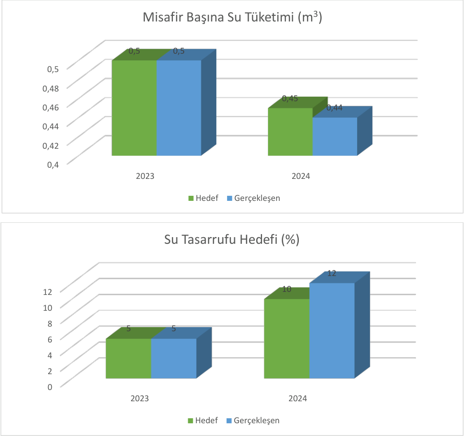 Doğal kaynakların çevre sorumluluğu bilinci ile etkin kullanımını sağlamak amacıyla; kaynak tüketiminden doğacak her türlü atıkların minimum seviyeye indirilmesi, kaynağında ayrıştırılması ve tehlikelilerin çevreye zarar vermeden bertaraf edilmesi, ilgili yasa ve yönetmeliklere uymak ve sürekli iyileştirmek, çalışanlarımıza, misafirlerimize, tur operatörlerimize, tedarikçilerimize ve topluma çevre bilincinin aşılanmasına katkıda bulunmak, politikamızı yaşam tarzı haline getirmek, hayatımızın her alanına yayılması için uygulamalarımızın sürekliliğini sağlamak ve kamuoyu incelemesine açık tutmak hedeflerimizdir