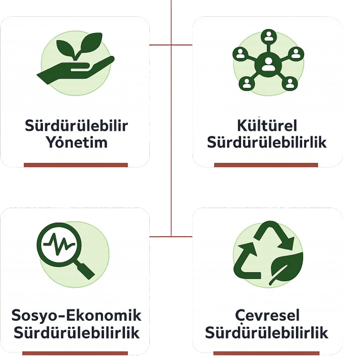 Sürdürülebilirlik; çevre değerlerinin ve doğal kaynakların israfına yol açmayacak biçimde, bugünkü ve gelecek kuşakların hak ve yararları gözetilerek kullanılmasını ifade eder. Amaç; sosyal, ekonomik, ekolojik ve kültürel boyutlarda dengeli bir gelişim sağlarken, gelecek nesillerin kendi ihtiyaçlarını karşılama yetilerini riske atmadan günümüz için kalkınmayı mümkün kılmaktır.